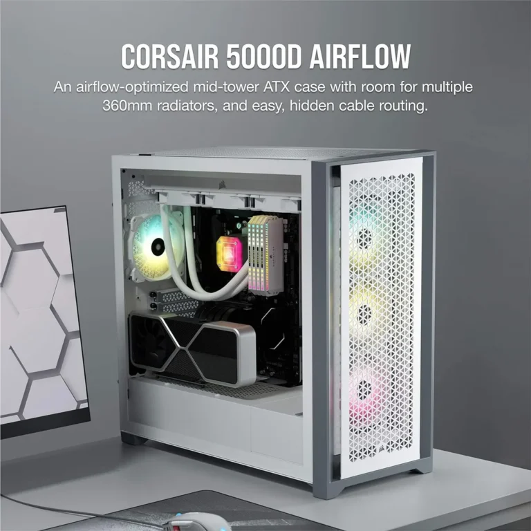 Corsair 5000D Airflow Blanco – Gabinete ATX con Alto Flujo de Aire y Gestión de Cables