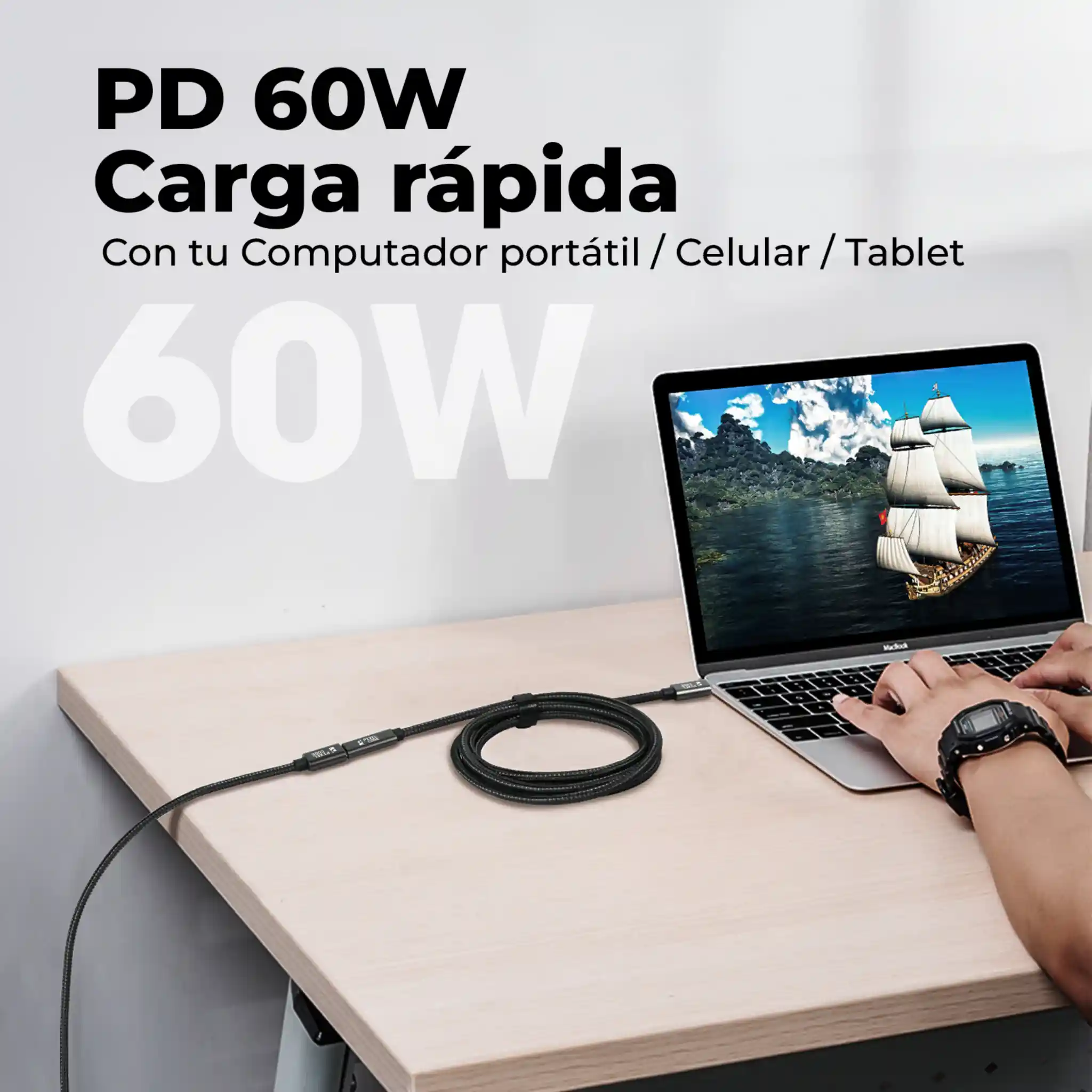 • Carga rápida 60W Power Delivery: Soporta hasta 60W (PD 3.0) para recargar celulares, tablets y portátiles compatibles de forma segura y estable. Ideal para uso diario con cargadores GaN y equipos que requieren energía constante y eficiente.
