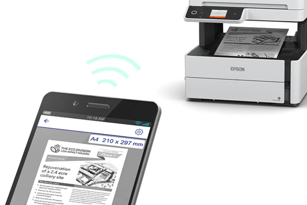 Equipada con Wi-Fi, Wi-Fi Direct y Ethernet, esta impresora facilita el trabajo en red dentro de oficinas y grupos de trabajo. Además, permite imprimir de manera remota desde smartphones y tablets gracias a la aplicación Epson iPrint.